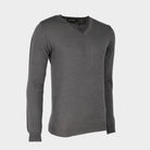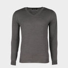 Super blød trøje af 50% ekstra fin italiensk merino uld og 50% akryl, hvilket gør den virkelig behagelig at bære. Den har lange ærmer og v-hals.