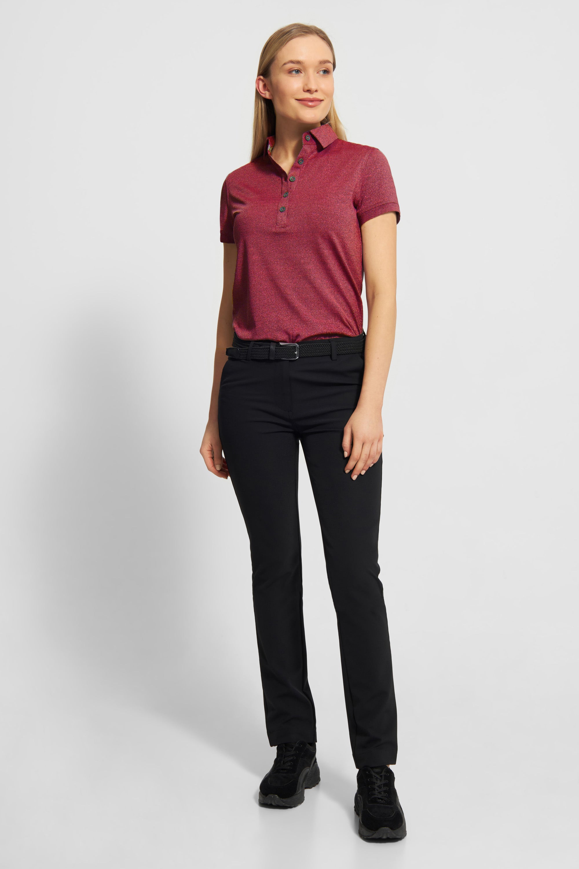 Barbara poloen er super stretchy, let og åndbar. Elasticiteten sikrer et godt fit, mens det lette materiale føles behageligt på kroppen - både på og udenfor golfbanen.