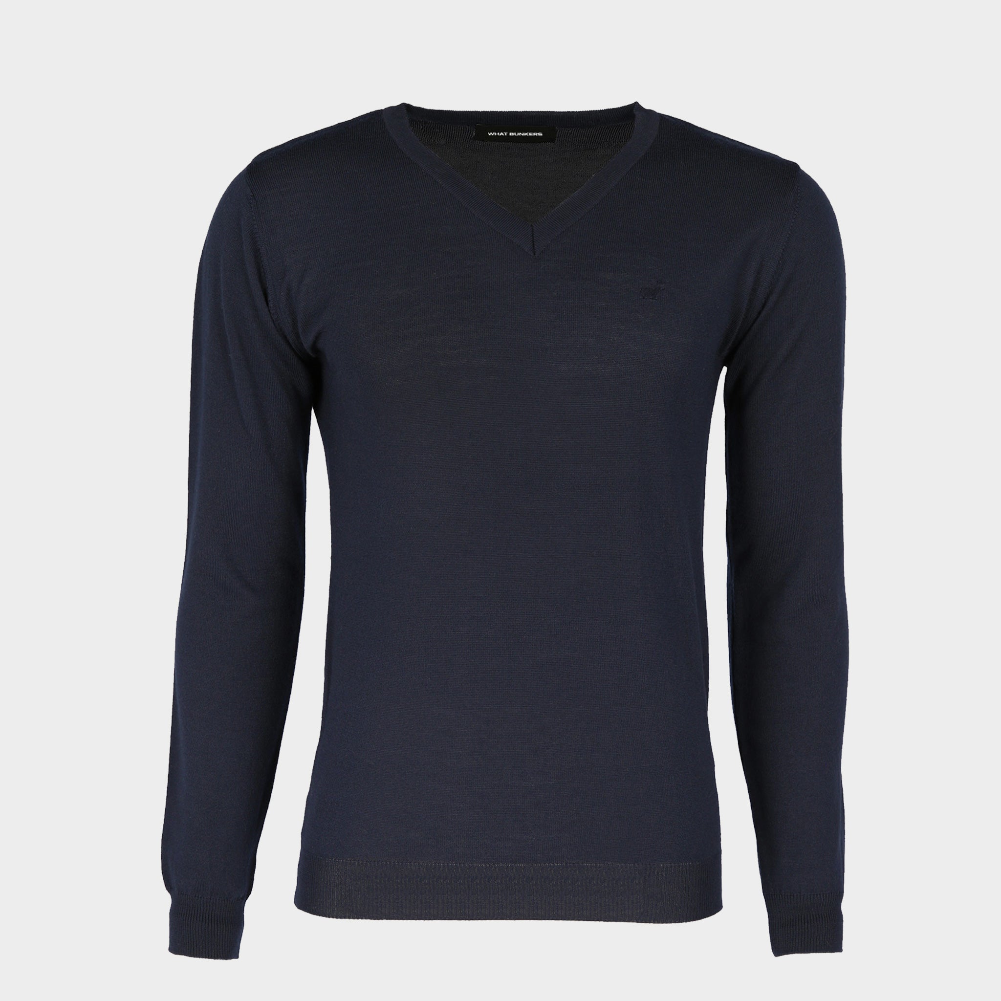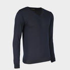 Super blød trøje af 50% ekstra fin italiensk merino uld og 50% akryl, hvilket gør den virkelig behagelig at bære. Den har lange ærmer og v-hals.