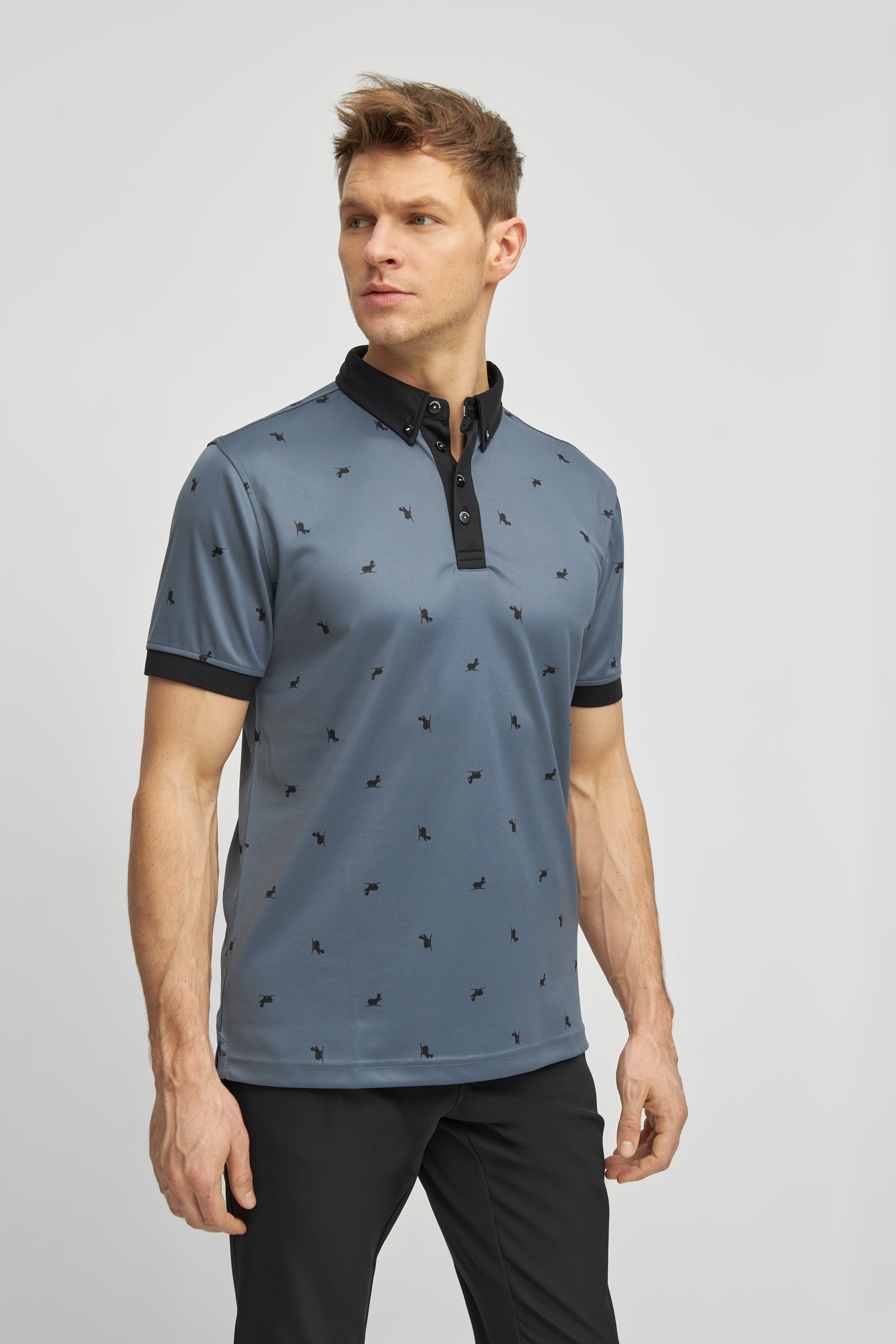 En frisk og stadig elegant golf polo shirt, lavet af 100% polyester Repreve. Den dyrbare hippo er spredt rundt på hele poloen.