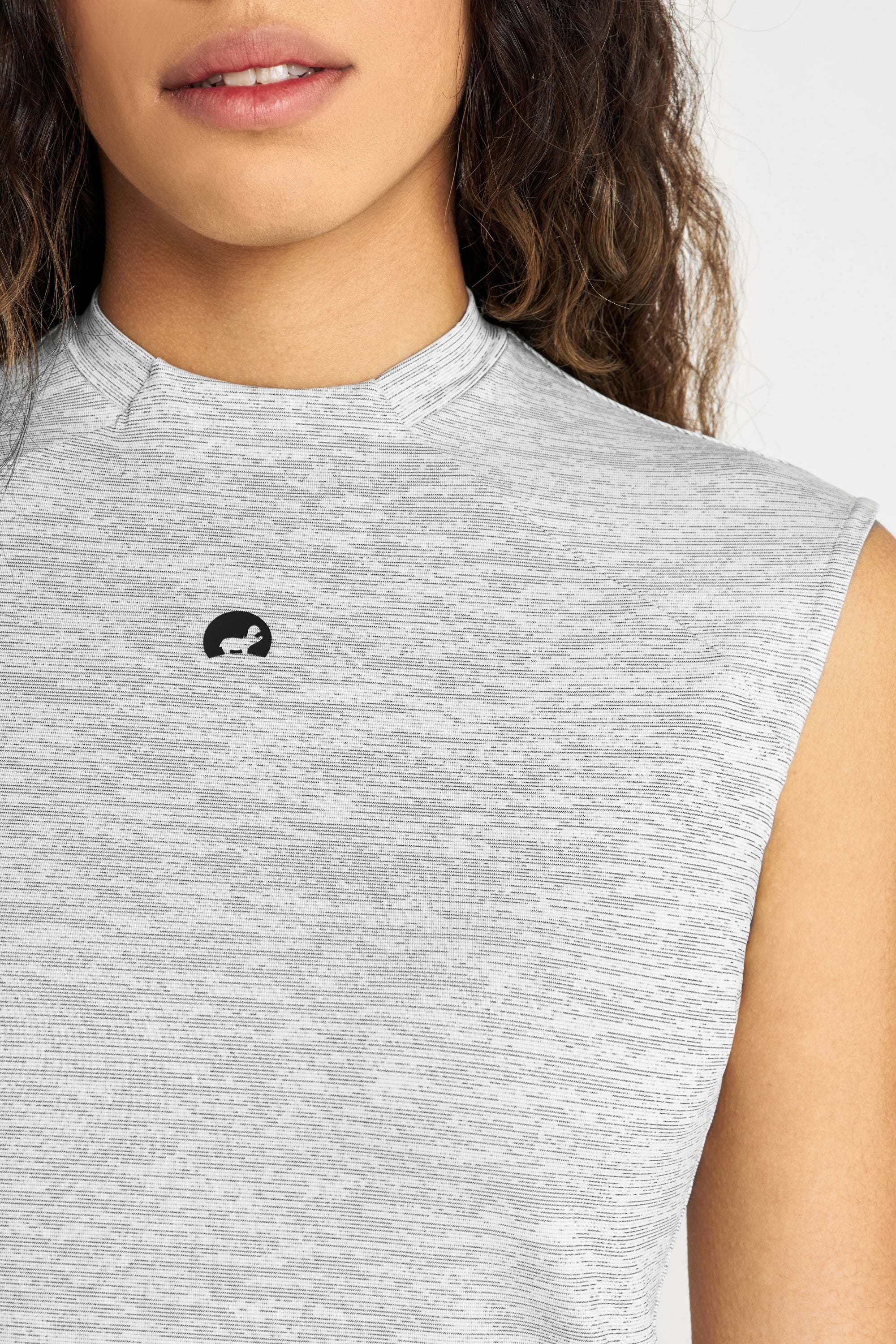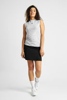 Den ærmeløse Thea polo shirt i grå har et let og elastisk design, der giver både komfort og en flatterende pasform. Vores nye gummi logo tilføjer et moderne touch til denne tidløse poloshirt uden ærmer.