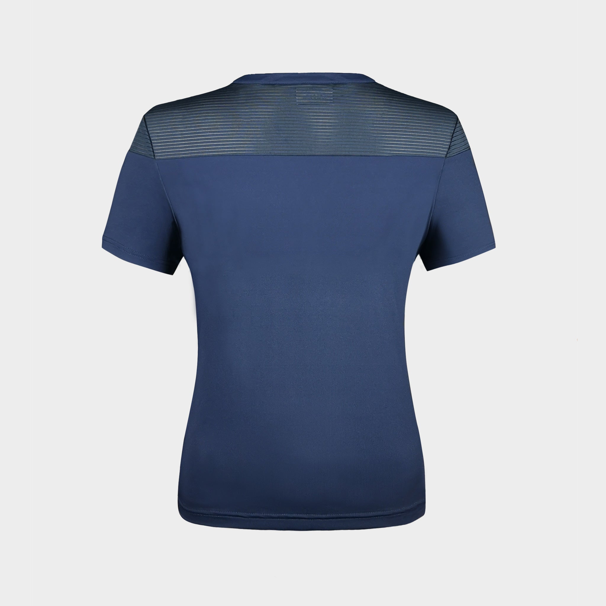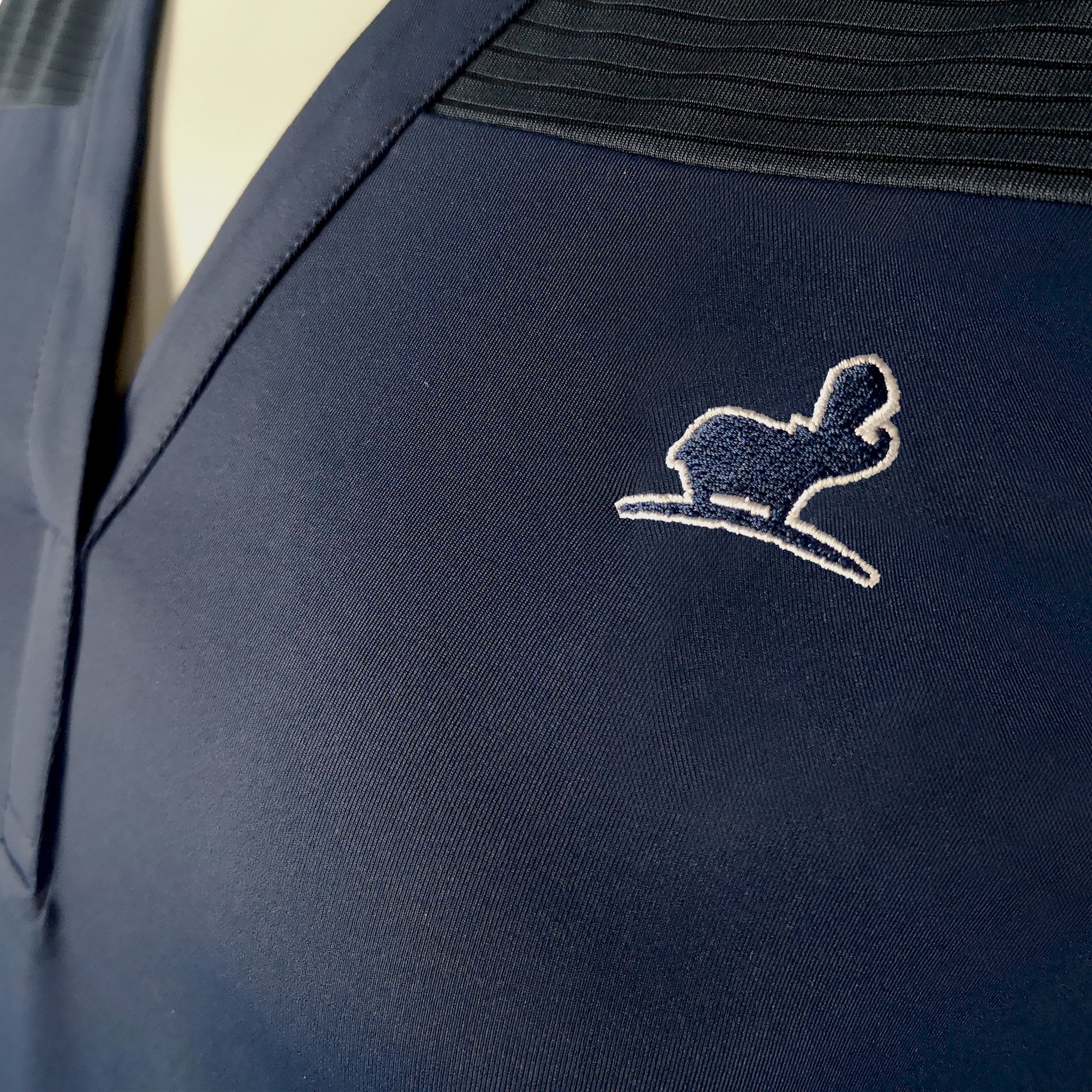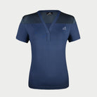 Dame polo uden krave og med diskret semi transperant detalje omkring skuldrene. Den er let, luftig og har masser af stretch.