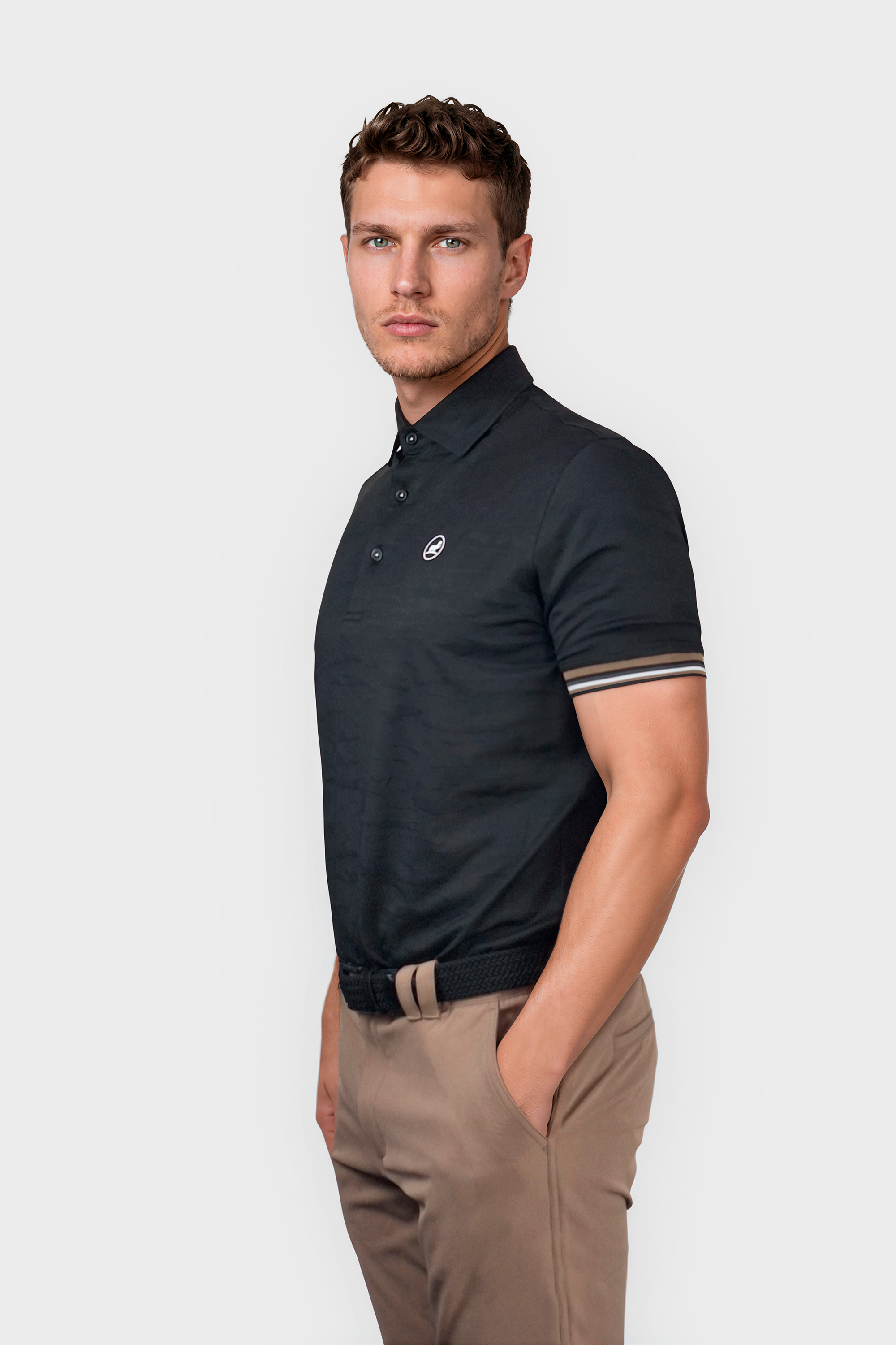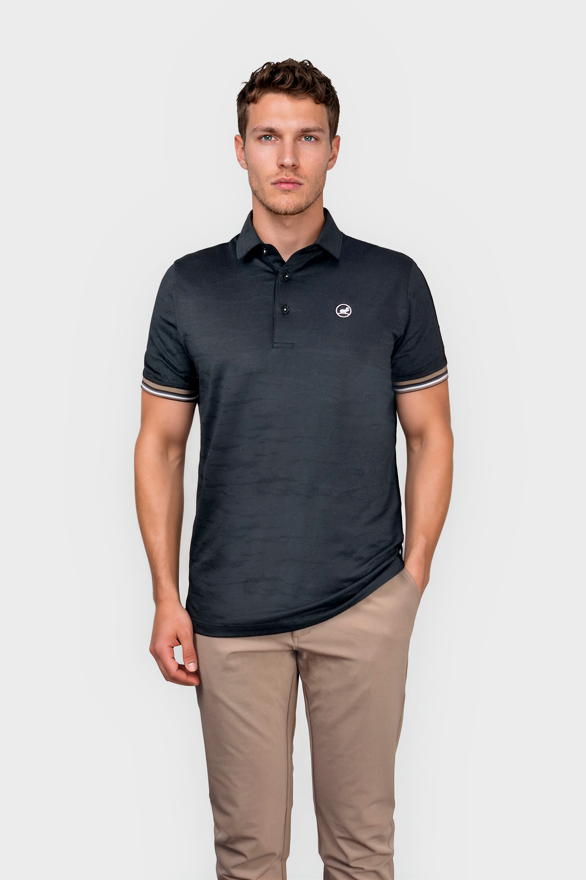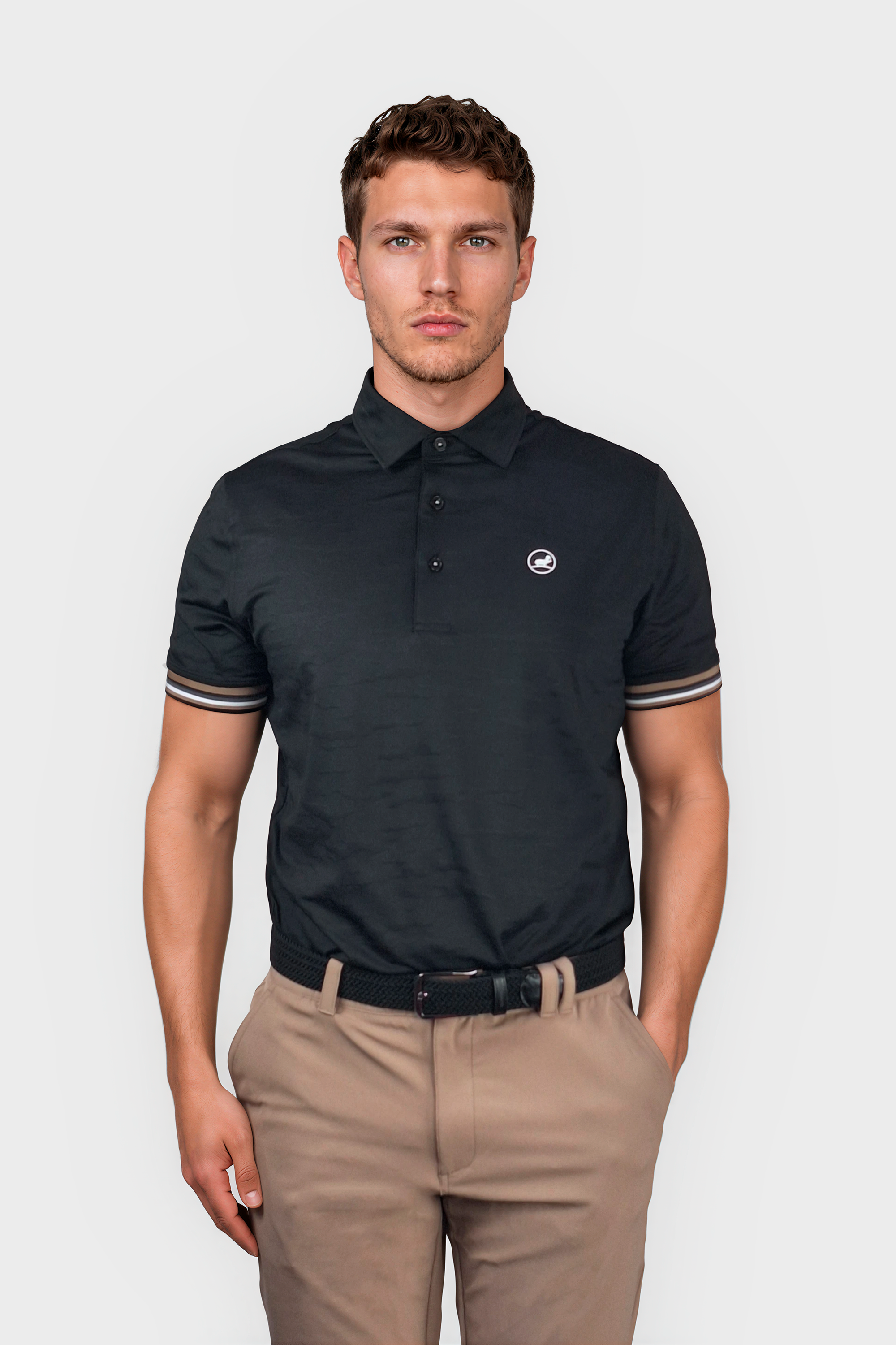 Magnus poloen i sort har et let tekstureret design, hvilket gør den til et stilfuldt og åndbart valg. Med 3 knapper og en stribet ribkant tilbyder den også ekstra detaljer for et strejf af raffinement. Det lette stof giver komfort og bekvemmelighed til brug hele dagen.