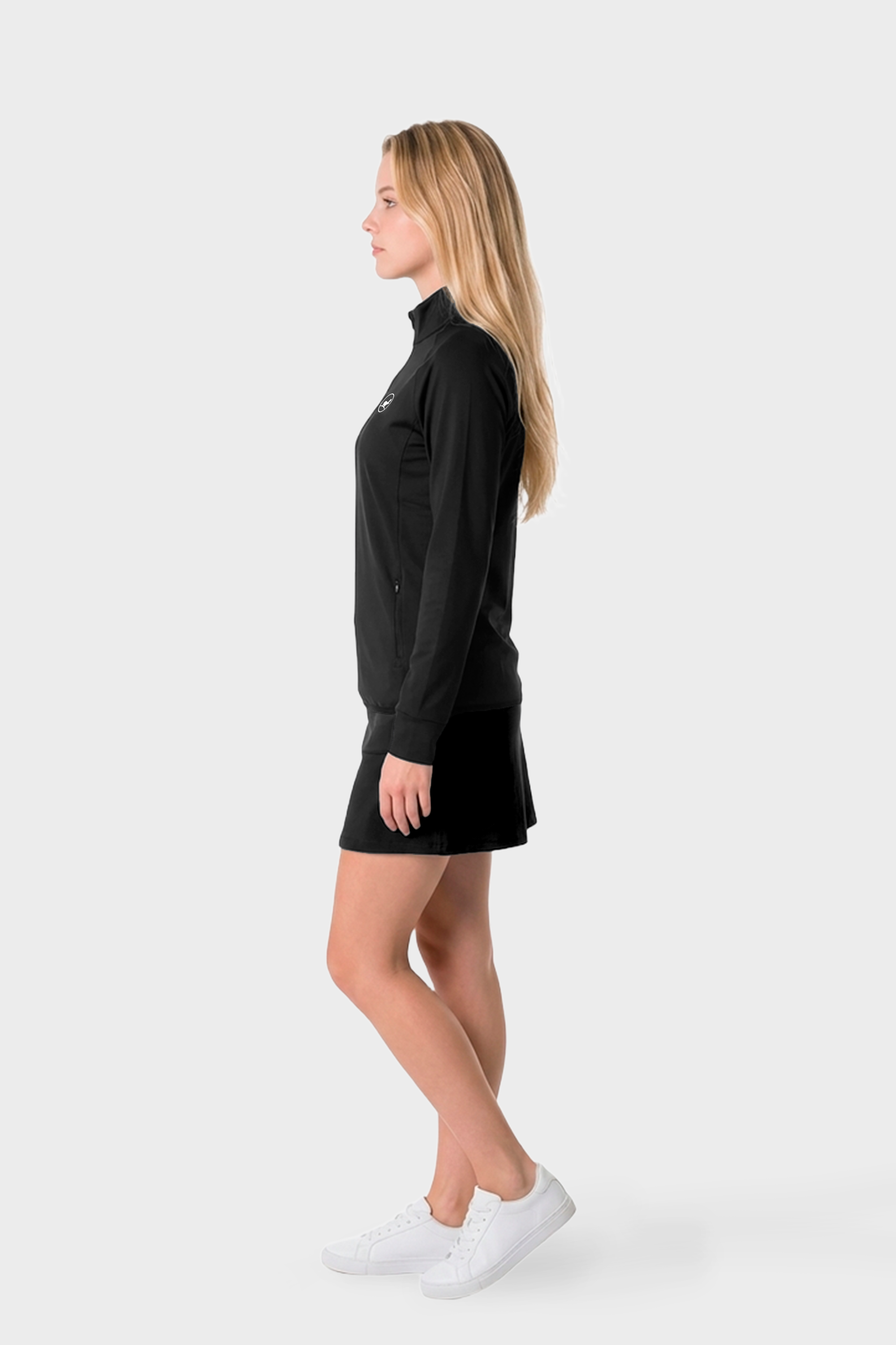 Forbliv ubesværet stilfuld og varm med vores varme mellemlag til kvinder i sort. Dette mellemlag er designet med en flatterende pasform og tilbyder både komfort og alsidighed til enhver aktiv lejlighed. Hold dine hænder varme i de praktiske lommer.
